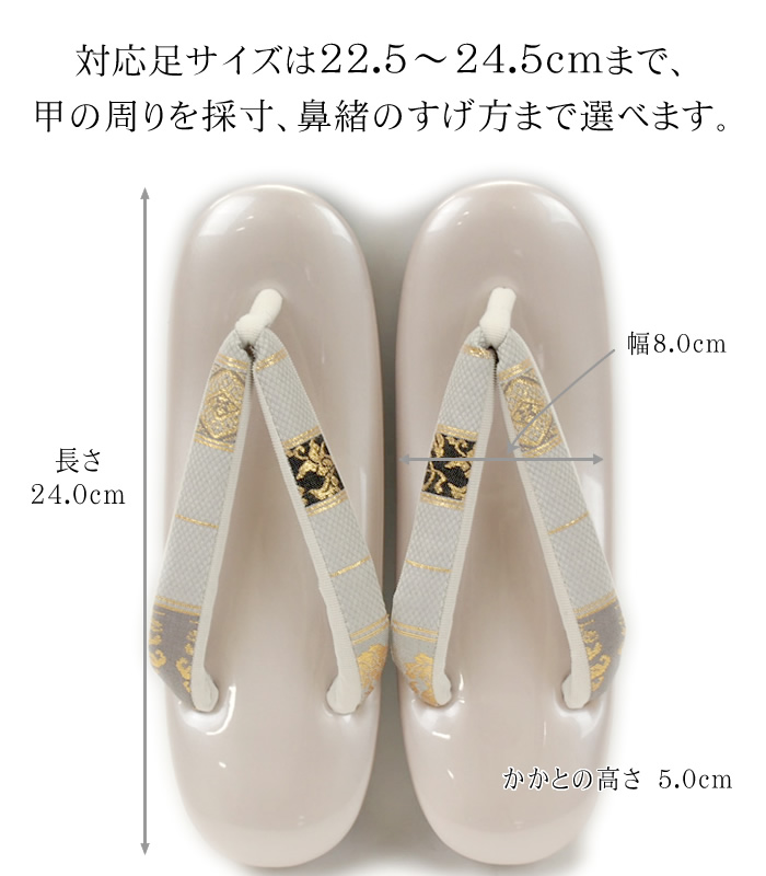 美しい光沢の草履台のカラーは、淡い藤色です。しっとりとした気品高い雰囲気を漂わせています。