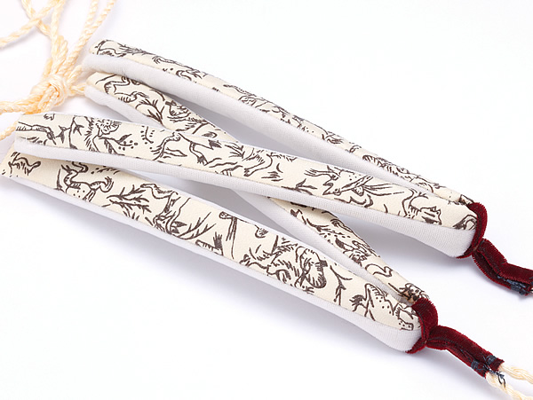 鹿のなめし革の上に漆を使用し紋様を表す皮染めの事ですが、 シルク印伝は絹地に漆の印伝と同じような紋様を浮き彫りで表現しています。